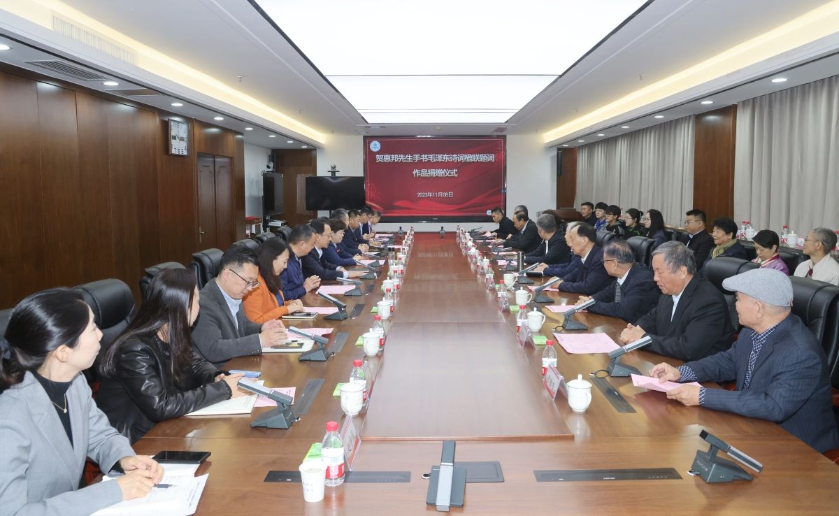 为深入学习贯彻习近平文化思想,贯彻落实党的二十大关于文化建设的战略部署,11月8日,学校举办贺惠邦先生手书毛泽东诗词楹联题词作品捐赠仪式暨作品展、《没有共产党就没有新中国》百年馆藏报纸资料捐赠仪式。中国杰出毛体书法家贺惠邦,中国收藏家协会副会长兼《中国收藏家》会刊主编维佳,山东省教育厅(省委教育工委)二级巡视员邓俊庆,山东省老教授协会会长赵彦修、常务副会长毛有高、副会长刘邦治、郑三,学校党委书记刘春华、党委副书记查玉喜,贺惠邦先生亲属代表,学校办公室、党委宣传部、离退休工作处、...